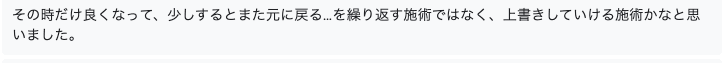“Ich dachte, es wäre eine Behandlung, die man aufheben kann, und nicht eine, die nur zu einem bestimmten Zeitpunkt besser wird und dann nach einer Weile wieder zur Normalität zurückkehrt...”