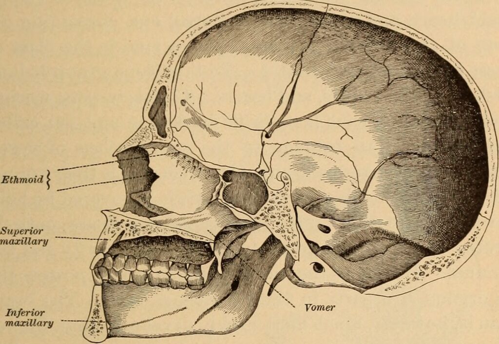 Lacrimal and ethmoid bones from the eyebrows