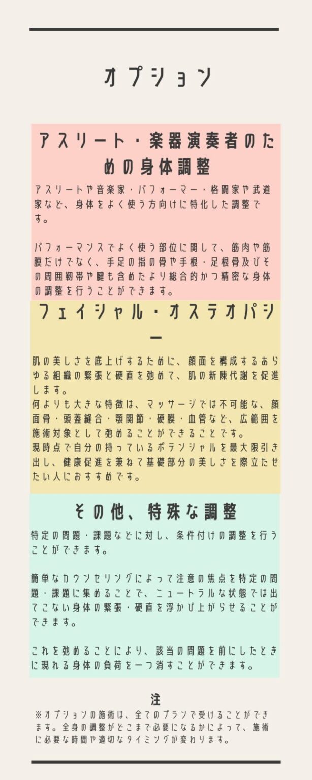 全体調整(施術の特徴・他院との違い)